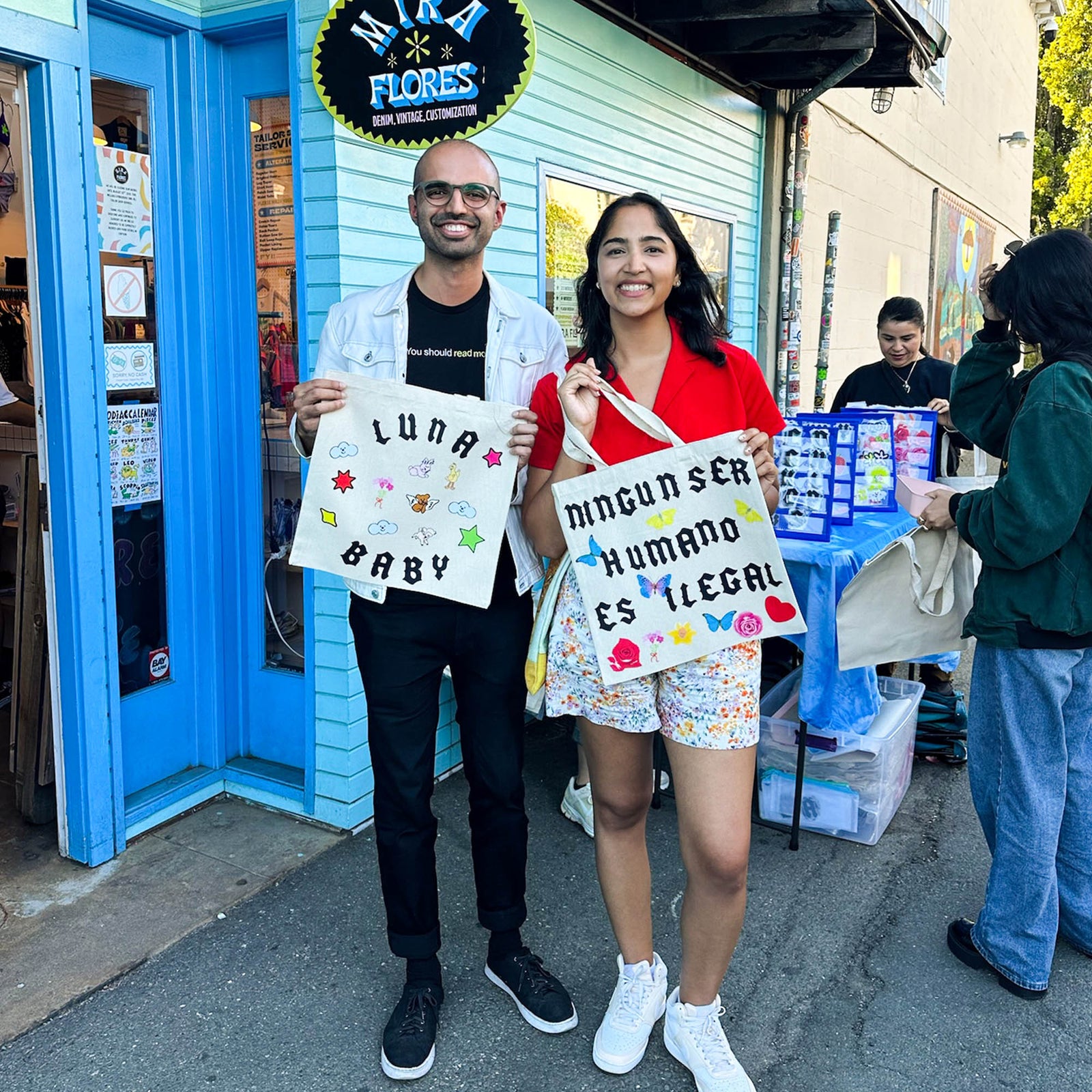We provide all materials! That includes tote bags, decals, heat press, and display stands. You let us know how many people you are expecting and we send you a quote from there.
