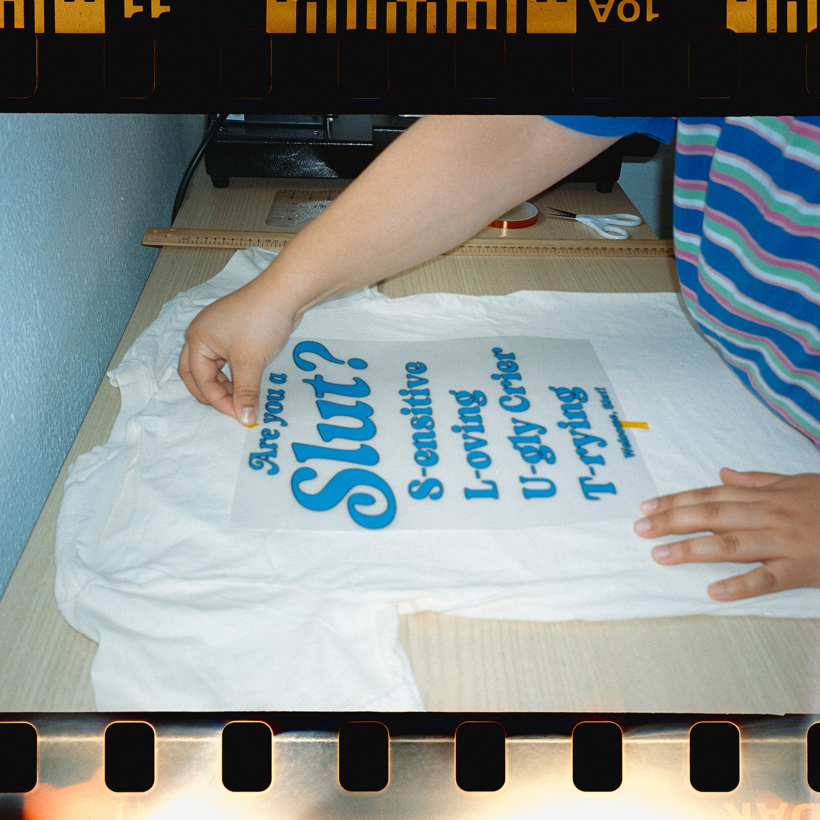 Yes! I design all of our stickers, affirmation decks, and apparel. Every shirt, sweater, and tote bag is hand pressed in our Los Angeles studio using DTF (direct to transfer film) sheets and a heat press.